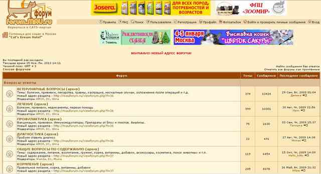 В нашем предыдущем материале мы уже раскрыли тему – «Форумы о мейн кунах», теперь перейдем к общим форумам о кошках, зачастую здесь есть и форумы по породам, но это не обязательный атрибут, а лишь дополнение. Итак, о чем мы общаемся на таких форумах? Да обо всем, что касается кошек. (03.11 20:54)
