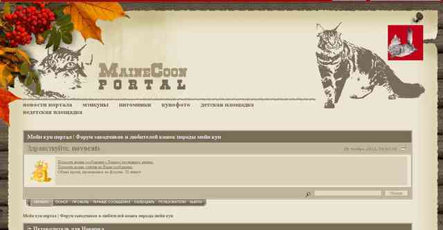 Форум о мейн кунах, как и любой другой, позволяет множеству пользователей, объединенных одними интересами, общаться между собой. Любители породы гигантских кошек обсуждают здесь все интересующие их вопросы, участвуют в спорах, дают и получают полезные советы, рассказывают о своих питомцах, делятся интересными фотографиями. (03.11 20:53)