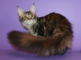В идеале хвост кунов должен быть пушистым, длинным – как минимум доставать через всю длину тела до лопатки и чистым. Все, кто видит мейн куна первый раз обращают внимание на его шикарный беличий хвост. (03.11 21:50)