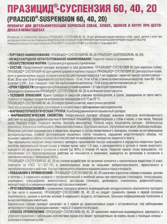Празицид суспензия инструкция