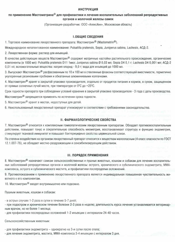 Мастометрин инструкция
